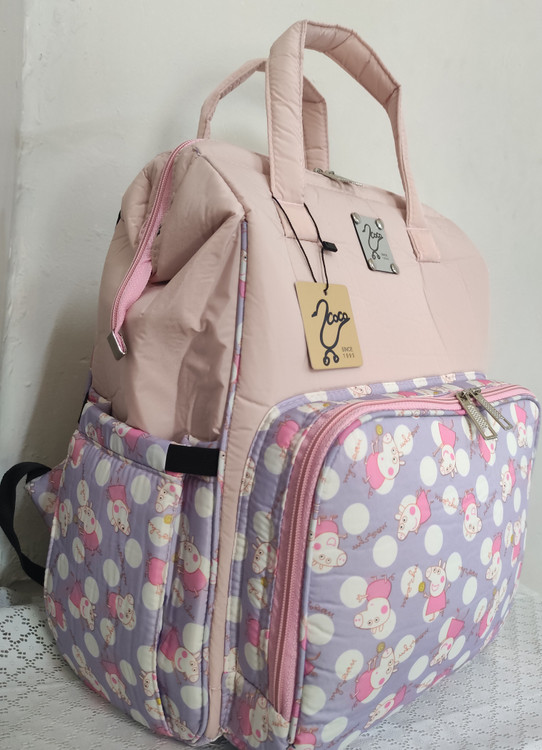 کیف لوازم نوزاد کوله ای مادرو کودک طرح چاپی فانتزی در ۶ رنگ زیبا پارچه مموری درجه یک و خرج کار کتان ترک و بهترین متریال و دوخت با کیفیت