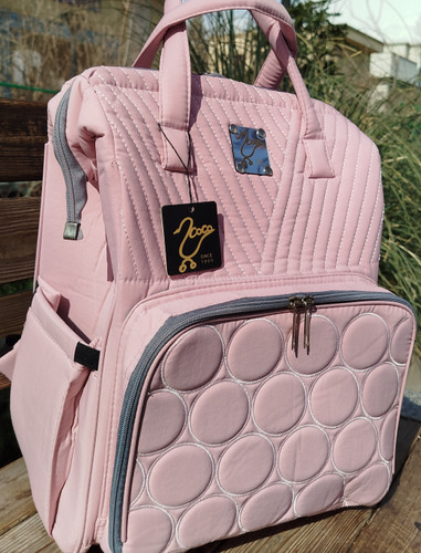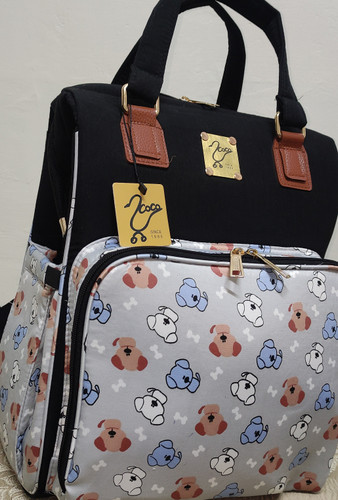 پارچه برزنت : استفاده از پارچه برزنتی درجه یک اندازه کار ۴۵ در ۳۳ دارای بند کالسکه دارای تشک تعویض. دارای جیب جدا در پشت کار برای پوشک تعویض شده نوزاد