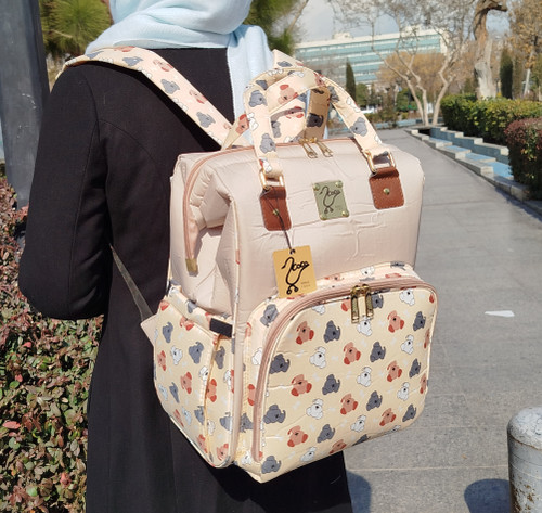 کیف لوازم نوزاد طرح حبابی کرمی ارسال رایگان